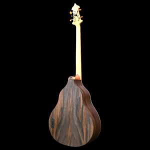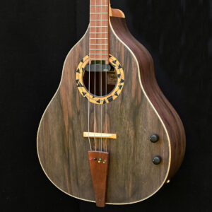 Octave electroacoustic bouzouki GDAE with octaves strings: 4 bass strings combined with 4 guitar strings for a “natural” octave effect by simply playing on the feel of the strings, a deliberately exaggerated body thickness to reach the sub-bass, this sazouk bass is the latest of the workshop’s bouzouki family.