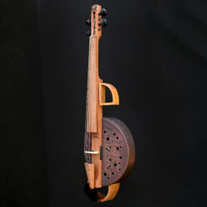 4 playing strings + 7 sympathetic strings, basswood monoxyl, larch and walnut resonator, hornbeam neck, sorb fingerboard, plane tree tailpiece, integrated piezo pickup.